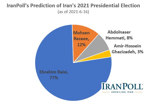 Iranpoll predicts Raisi to win with 77% of the vote and a 53% turnout: https://pbs.twimg.com/media/E4HxqzKWYAIUQnD?format=jpg&name=small