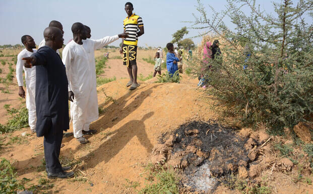 Residents visit the site of a US airstrike in Jabo, Nigeria, December 26, 2025 (Tunde Omolehin/AP)