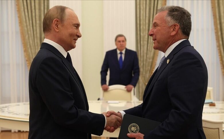 Vladimir Putin greets Donald Trump’s envoy, real estate developer Steve Witkoff, in the Kremlin, Moscow, Russia, December 2, 2025