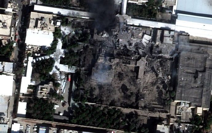 The compound of Iran’s Supreme Leader, burnt and devastated amid Israel-US strikes, Tehran, February 28, 2026