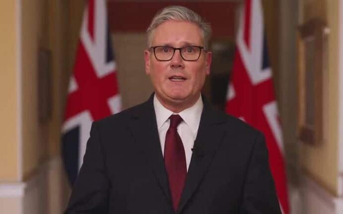 UK Prime Minister Keir Starmer at a press conference on the US-Israel war v. Iran, March 6, 2026 (Sky)