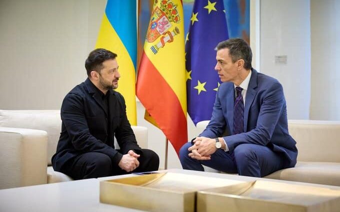 Ukraine President Volodymyr Zelensky with Spanish Prime Minister Pedro Sanchez, Madrid, March 18, 2026