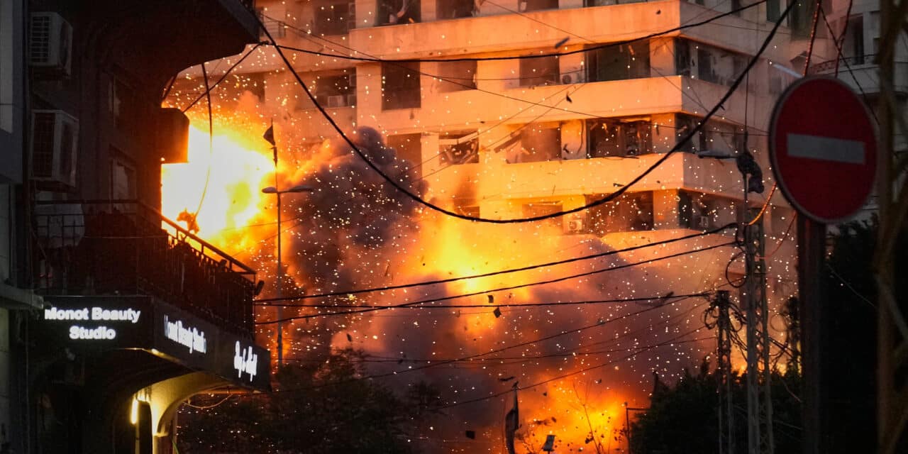 An explosion in a building following an Israeli strike on central Beirut, Lebanon, March 18, 2026
